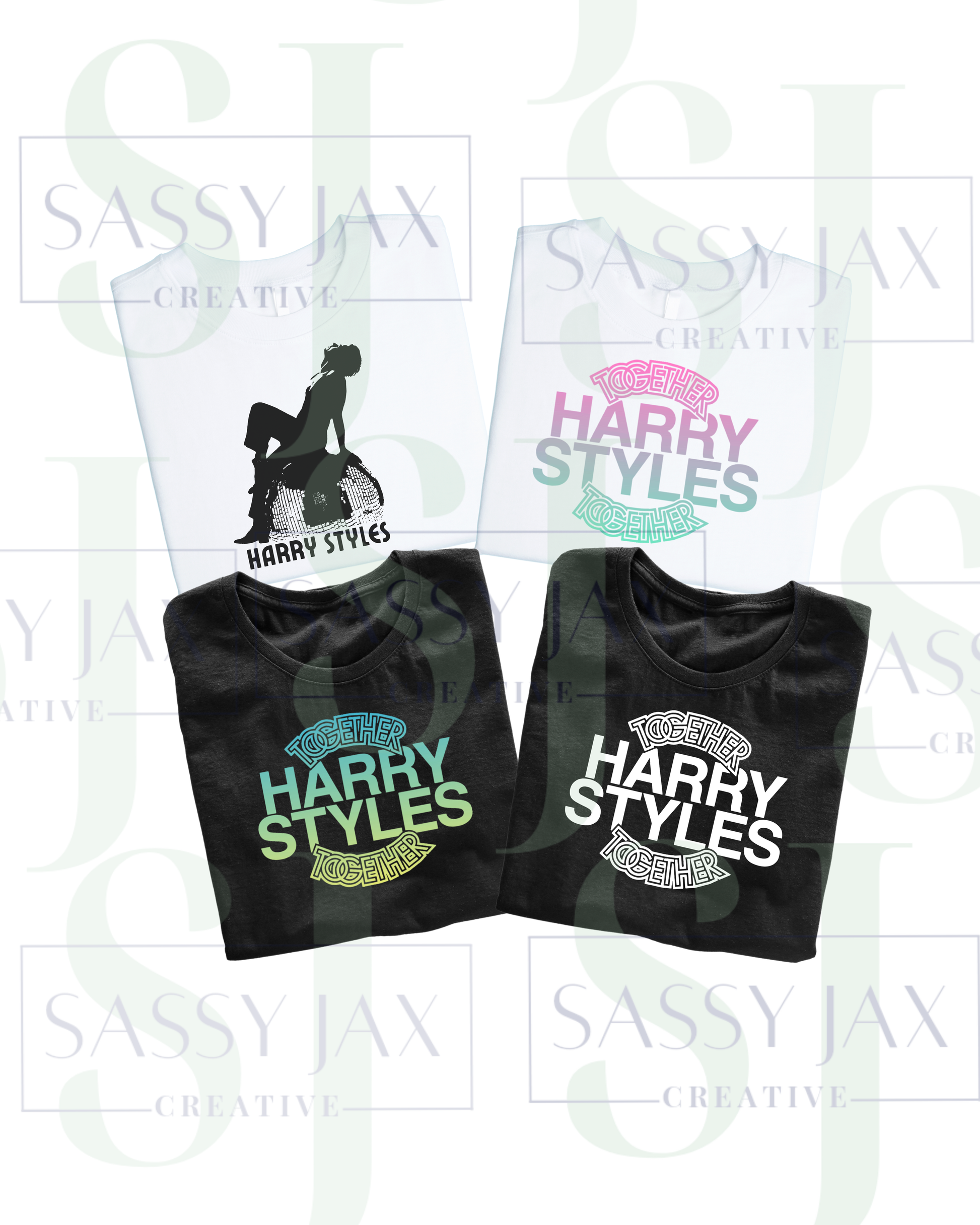 Fit right in with a Harry top bespoke to Sassy Jax on a black or white t-shirt - designs detailed below explaining the variations options.
