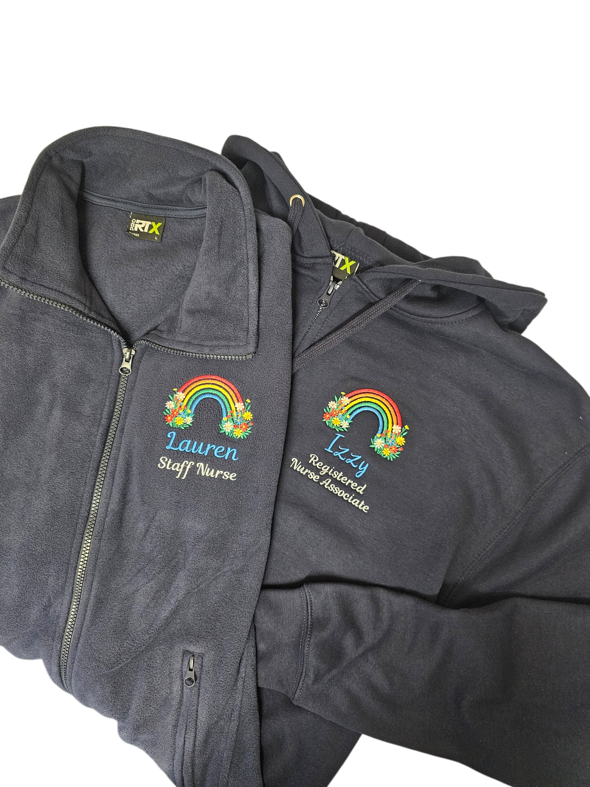Personalised embroidered fleece- bright rainbow and wild flowers - healthcare, nurse, student nurse, midwife gift