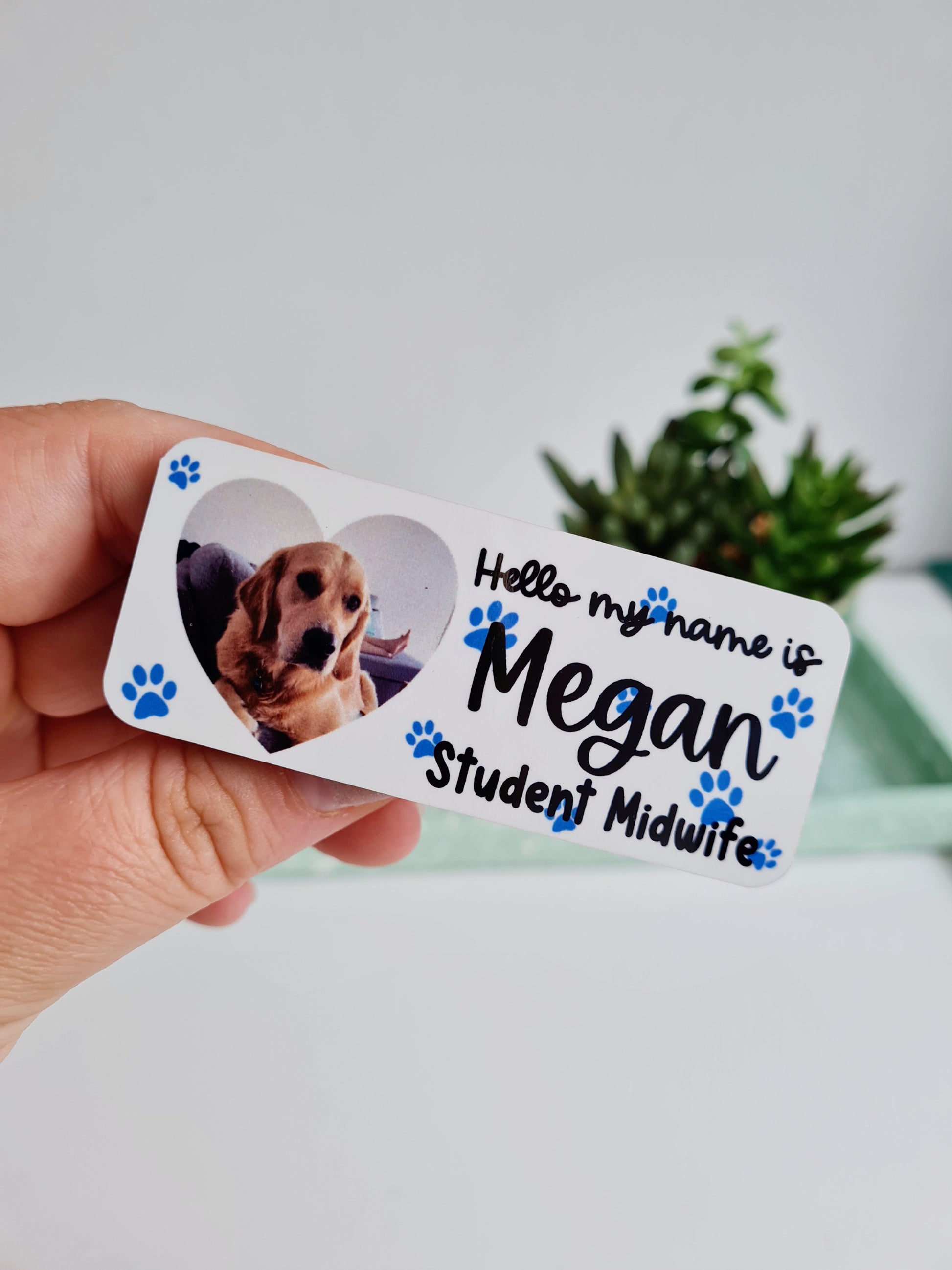 Bespoke Photo Personalised Name Badge - hello my name is badge, student nurse, student midwife, midwife badge, nurse badge